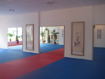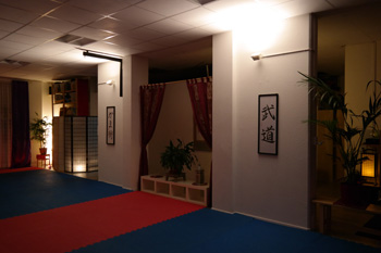 Das Dojo bietet eine grössere gepolsterte Trainingsfläche mit zwei Umkleidekabinen (mehrere Duschen).